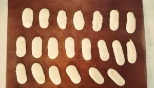 - Successivamente, formare con il sac à poche e bocchetta liscia delle piccole strisce direttamente su una teglia rivestita di carta forno.